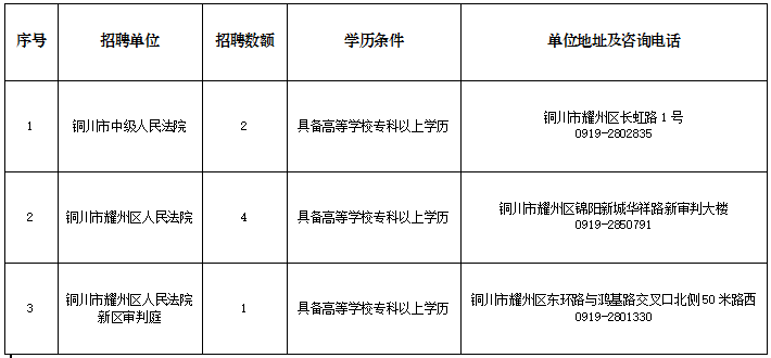 根據(jù)工作需要及相關政策規(guī)定,經(jīng)陜西省高級人民法院批準,銅川市法院系統(tǒng)面向社會公開招聘聘用制書記員?,F(xiàn)將有關事項公告如下: